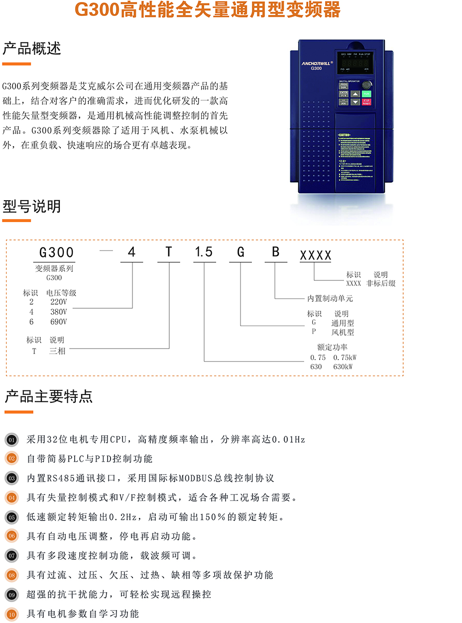 G300系列變頻器是艾克威爾公司在通用變頻器產(chǎn)品的基礎(chǔ)上,對(duì)于客戶的準(zhǔn)確需求,進(jìn)而優(yōu)化研發(fā)的一款性能高的矢量型變頻器,是通用機(jī)械性能調(diào)整控制的產(chǎn)品。G300系列變…